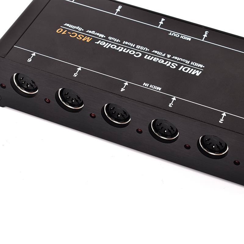 MIDI数据流控制器(MSC-10)是一款全功能的MIDI数据流控制系统。MSC-10具备丰富的MIDI接口,比如4xUSB主机口,USB设备口,6个MIDI输入和6个MIDI输出。MSC-10的支持USB主机口和MIDI DIN口的路由和过滤,设置后可以脱离计算机单独工作。此外,MSC-10的USB设备口也可以连接计算机,作为一个USB MIDI集线器使用,连接多个MIDI设备。